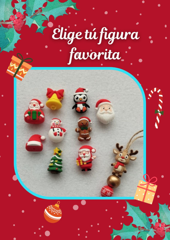 Cada colgante está cuidadosamente montado con figuras navideñas como: